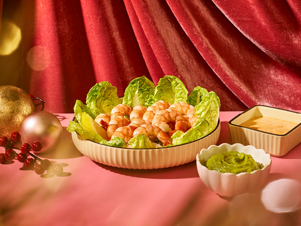 Succulent tiger prawns (tail on) served with creamy smashed avocado, crisp lettuce and a classic tangy cocktail sauce.